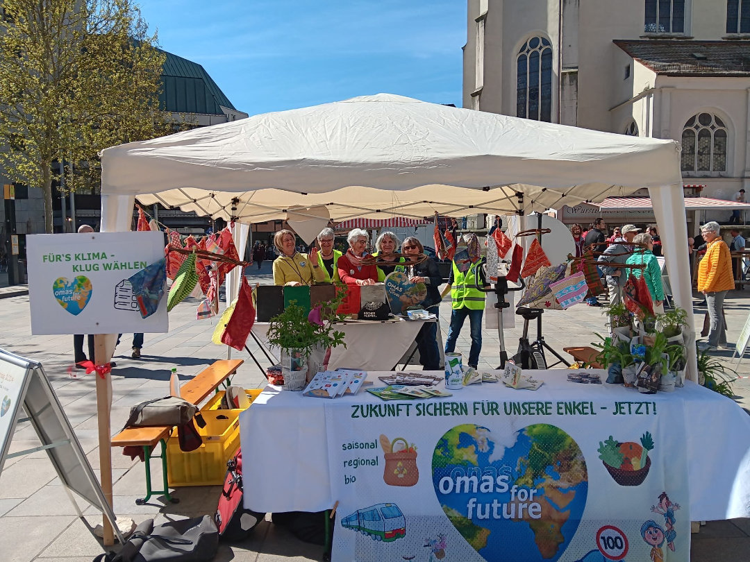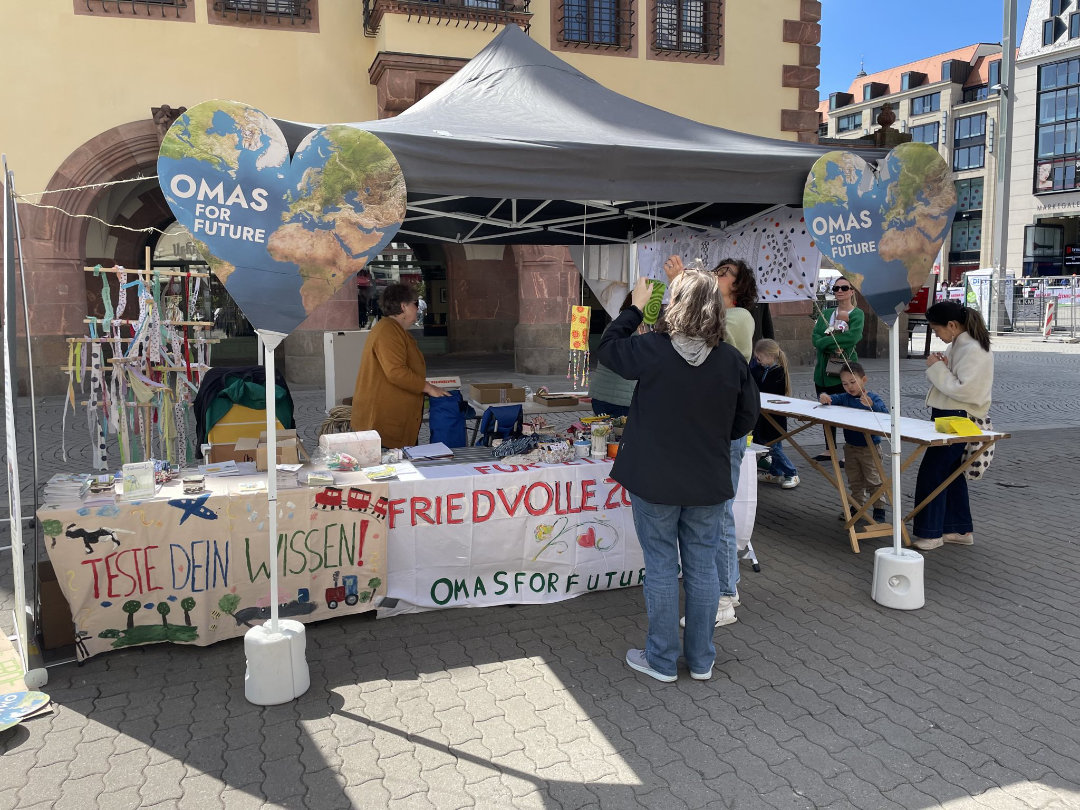 Am 27. April, in Anlehnung an den internationalen Tag der Erde und zum Tag der Klimademokratie, veranstalteten die Omas for Future wieder in einigen Städten ihre bekannten „Zukunftstage“. Rund um das Thema „Wie wollen wir in Zukunft leben?“ kamen Bürger*innen und Akteur*innen aus allen Bereichen der Stadtgesellschaft zusammen, wurden Ideen, Meinungen und Vorbilder ausgetauscht. Gemeinsam wurde diskutiert und natürlich auch gefeiert !