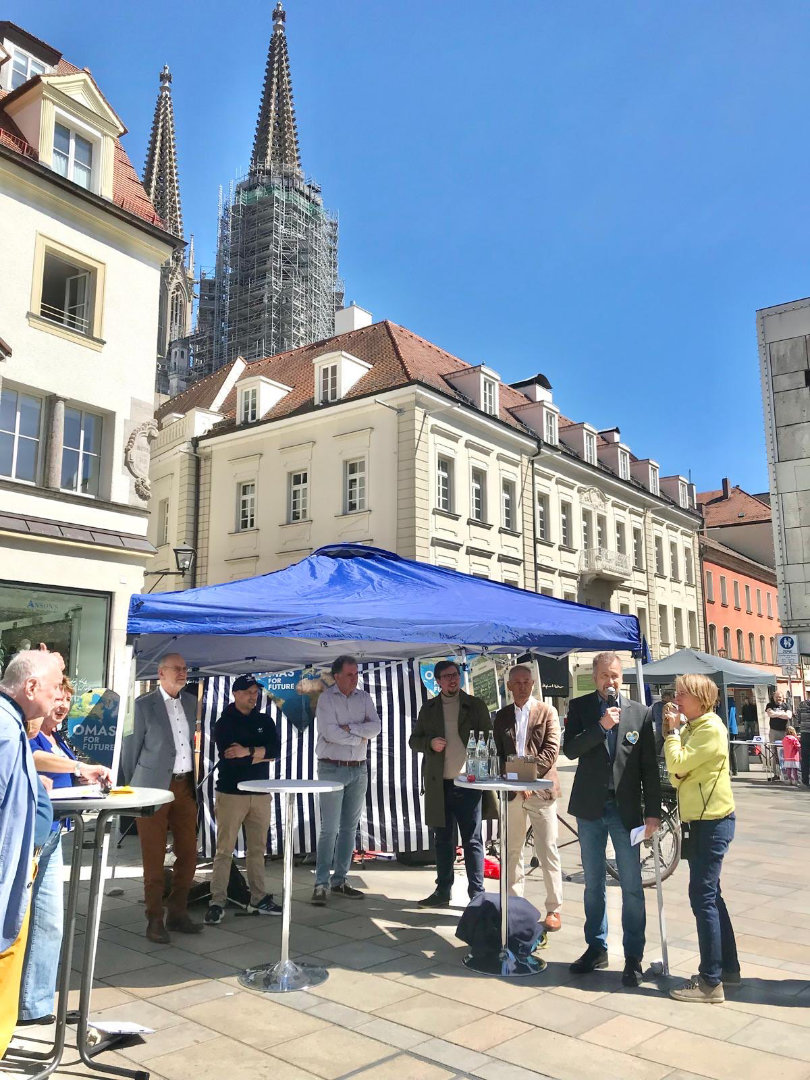 „Es wird heiß in Regensburg, was tun?“ hieß es auf dem Regensburger Neupfarrplatz. Einer der Höhepunkte war das „Mittagsgespräch“ mit Regensburger Stadträten, dazu gab es viele Informationen rund um Klima und Umwelt für eine lebenswerte Zukunft.