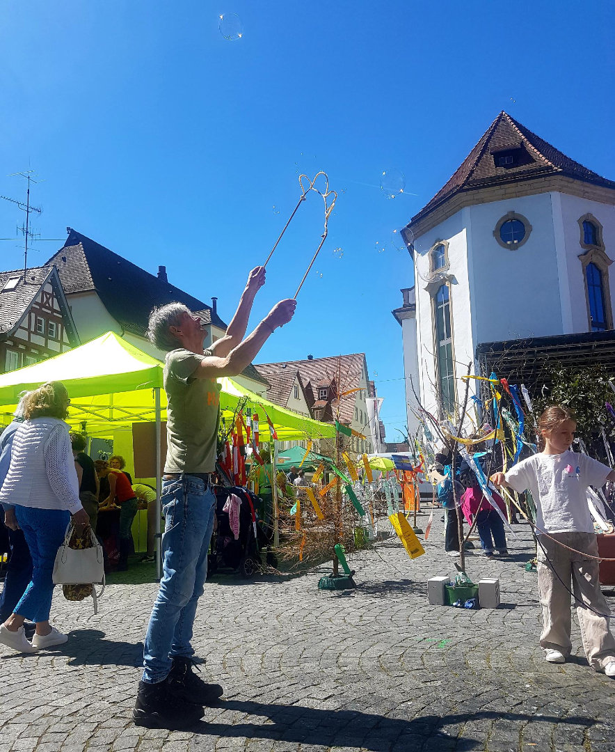 Auf den Kornmarkt in Bad Kreuznach luden die Regionalgruppen Bad Kreuznach und Nahe-Glan gemeinsam zum Zukunftstag ein. Von Klimabändern und Klimatalk bis zum Kleidertausch, von Musik und Tanz bis zu Mitmachaktionen, von Solar- bis zu Gartentipps gab es Informatives und Unterhaltsames für die ganze Familie: