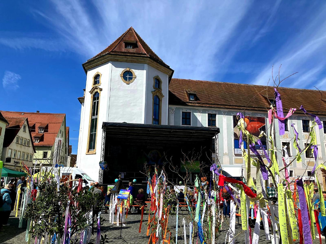 „Erschaffe mit uns einen Zukunftswald!“ Auf dem Schwäbisch Gmünder Johannesplatz wurden Zukunftsbäume mit Klimaversprechen versehen. Außerdem gab es ein buntes Bühnenprogramm, Infostände und Verpflegung. Die Omas for Future und 35 weiteren Gruppen waren vor Ort.