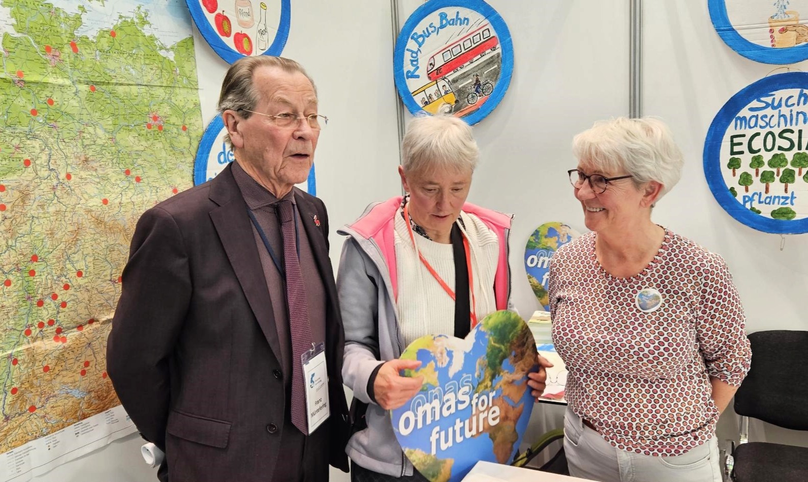 Mehrfach konnten wir auch Hinweise auf Regionalgruppen der Omas geben, da durchaus Interesse an einer Mitarbeit bestand! Sehr hilfreich: Unsere Übersichtskarte mit den roten Punkten als Standorte für alle Regionalgruppen. Dieser überregionale Blick unterscheidet so eine bundesweite Messe ja von unseren „heimischen“ Aktivitäten. Und eines habe ich organisatorisch gelernt: Hüte wie einen Augapfel die Kontaktadressen, die dir gegeben werden!
