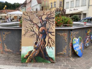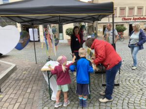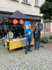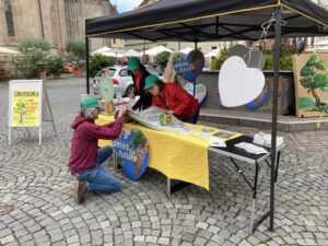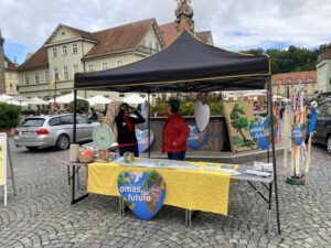 Einmal im Monat gibt es einen Infostand der Omas4Future in der Nähe des Wochenmarktes mit Glücksrad!