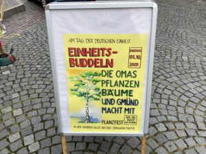 Im August war das Thema „Bäume pflanzen“. Wir haben schon zu unserer Aktion „Einheitsbuddeln“ am 03.10. in der Grabenallee bei der Judentreppe eingeladen!