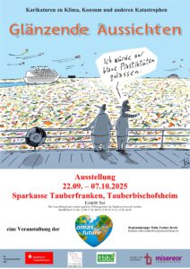 Humor ist, wenn man trotzdem lacht… Auch in der heutigen Zeit trifft dieser Satz trotz der vielen Katastrophen immer noch zu.Mit diesem Satz möchten wir, die Regionalgruppe „omas for future“, Sie zu der Karikaturenausstellung „Glänzende Aussichten“ einladen.