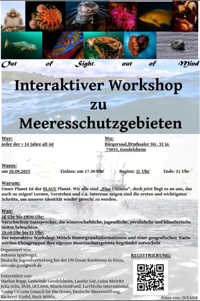 Die junge Gondelsheimerin Antonia Spielvogel hat sich dem Meer und seiner Ökologie verschrieben. Sie möchte die Menschen für die Bedeutung des Meeres und seiner Ökologie sensibilisieren. Denn Fakt ist, dass unsere Meere am Rand des ökologischen Kollapses stehen. Und dafür tragen wir Menschen die Verantwortung. Unsere Spuren und fahrlässigen Hinterlassenschaften sind längst bis in die entlegensten Winkel dieser Welt gedrungen. Deshalb lädt Antonia zu ihrer Veranstaltung „Aus den Augen, aus dem Sinn“ ein. Bürgermeister Markus Rupp hat für den Workshop den Ratssaal der Gemeinde zur Verfügung gestellt und hofft sehr, dass möglichst viele Menschen – nicht nur aus Gondelsheim – Antonia’s Angebot annehmen werden.“