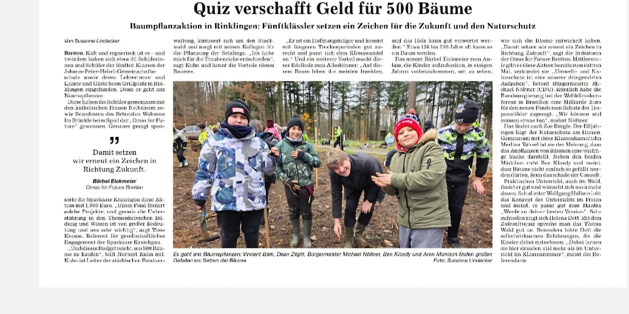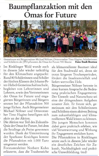 Am Donnerstag haben wir 500 Traubeneichen gepflanzt! BNN und Brettener Woche schreiben dazu: