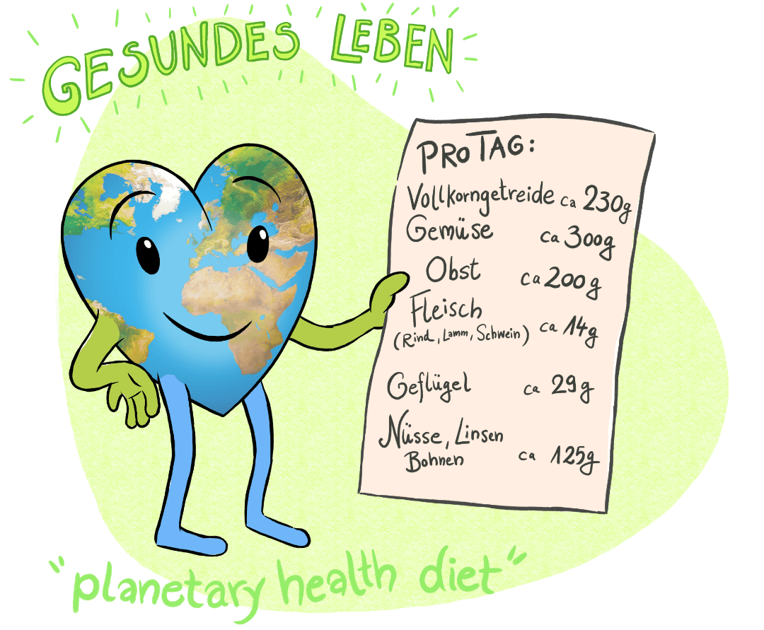 2019 hat die EAT-Lancet-Kommission mit Wissenschaftlern aus 16 Ländern eine Ernährungsempfehlung – Planetary Health Diet – veröffentlicht, bei der 10 Milliarden Menschen gesund satt werden, ohne dass unsere Erde zerstört wird. Ferner entspricht die berechnete Nahrungszufuhr den Richtlinien der Deutschen Gesellschaft für Ernährung.