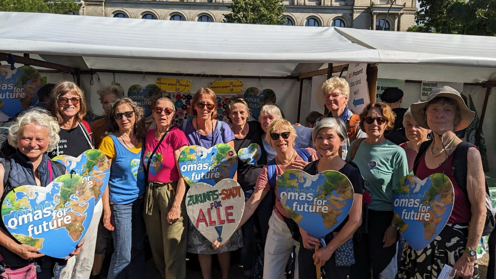 Die Omas for Future Berlin, unterstützen das Projekt „ARTagainstECOCIDE “ mit Häkelnadel und Wollfaden!