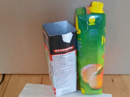 Tetrapacks, Papierreste, Bänder